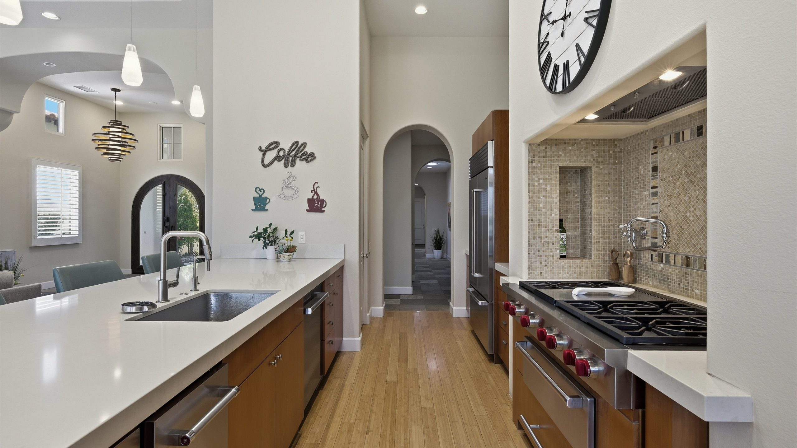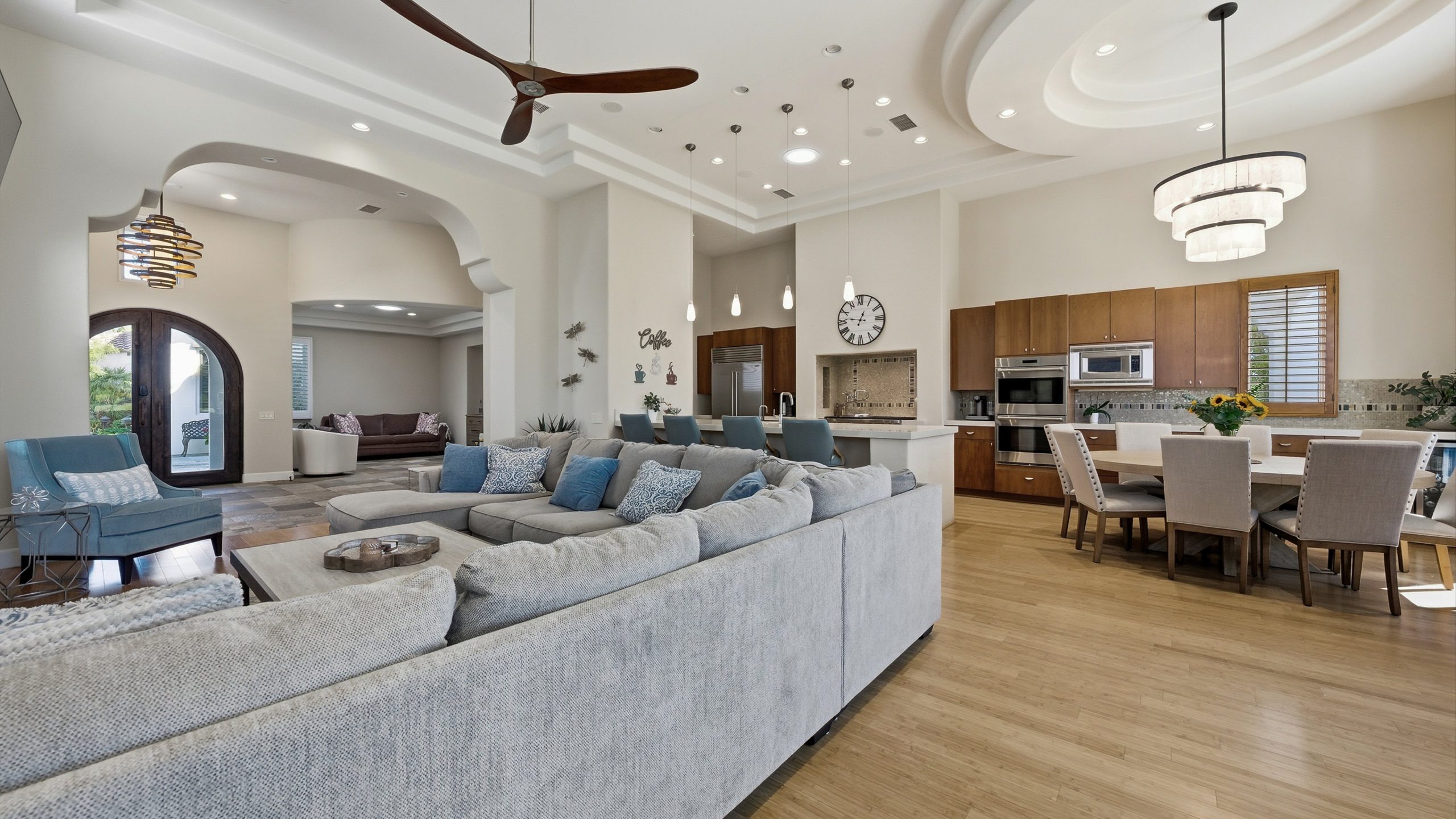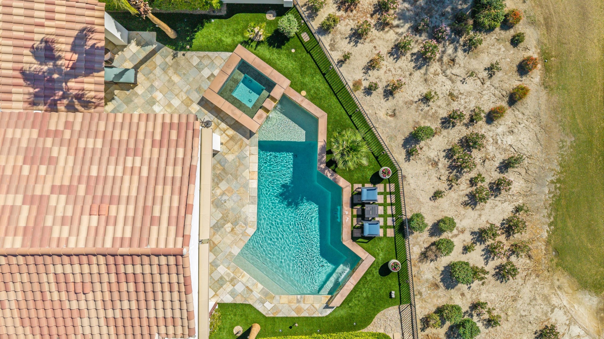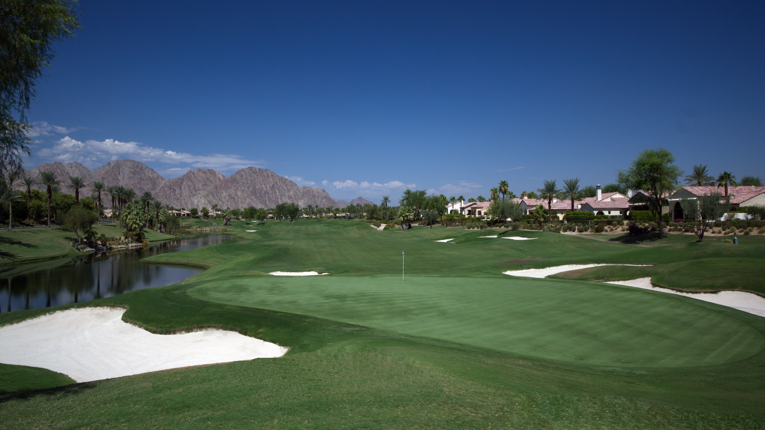 Framed by fairway, lake, and mountain vistas, this Andalusia at Coral Mountain retreat makes an unforgettable first impression. From the moment you enter the lush, landscaped courtyard to the instant you step into the backyard and take in commanding views of the 9th fairway, a serene lake, and the Santa Rosa Mountains, the home delivers pure breathtaking satisfaction. Inside, clean architectural lines and designer finishes set a contemporary tone. The re-imagined chef’s kitchen pairs style with performance, showcasing sleek cabinetry and premium Wolf, Asko, and Sub-Zero appliances. A sumptuous primary retreat features bamboo flooring, a custom closet system, a rain-glass shower, a spa tub, and a soothing river-stone floor. Thoughtful details are everywhere with plantation shutters, bamboo and slate flooring, LED lighting, refined Kallista fixtures, and a Definitive Technology sound system. Outdoor living is equally impressive with a pool and spa, built-in BBQ with two-burner cooktop, Kool Fog misting system, motorized retractable awnings, a slate-tile pool deck, and a cozy fire pit. It’s an ideal setting for effortless everyday living and unforgettable entertaining. With timeless design, quality updates, and postcard-worthy sunsets, this home offers a rare blend of sophistication and comfort. Come live the life you’ve always imagined!